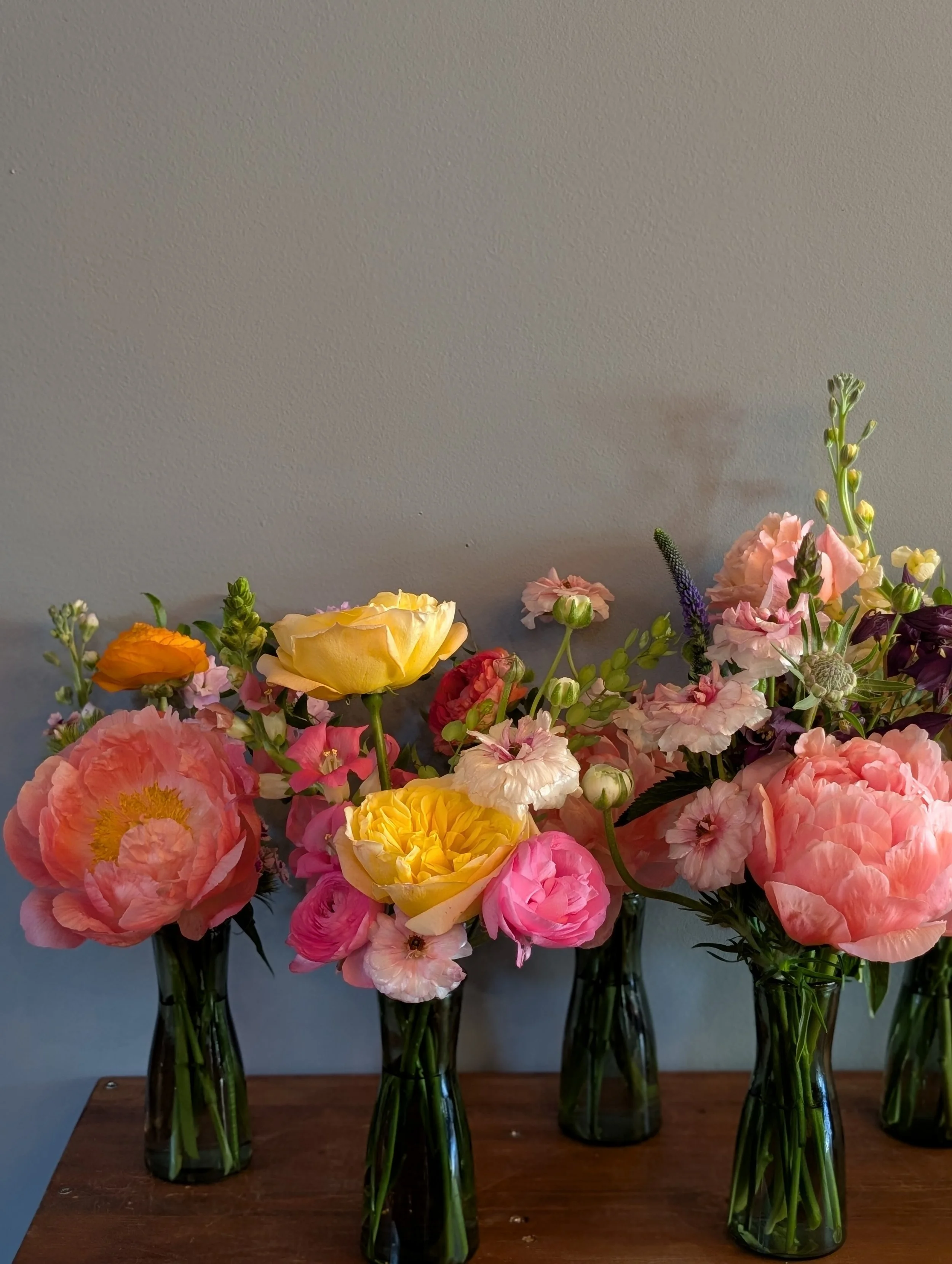 Arrangements are created by Carmella of Westfield Flower Box and include a selection of sustainable and local Spring blooms!