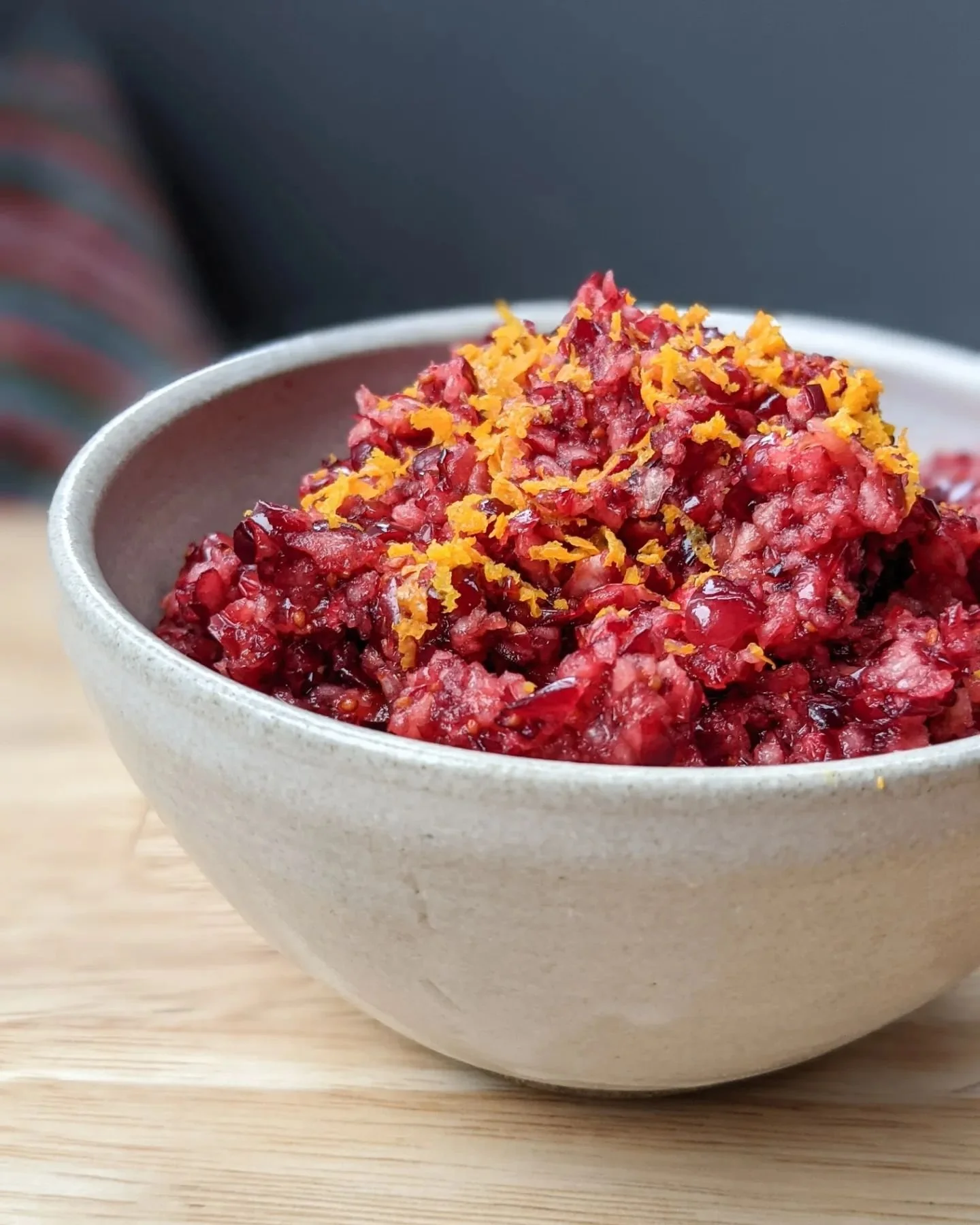 fresh cranberries & orange zest chopped into a light & refreshing relish